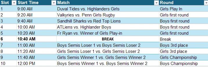 Saturday - Pool Play: